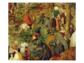 For example you see here with the Breugel "Road to Calvary" painting is actually revealing the superstitious frenzy that is whipped up, giving quite a secular meaning, but if you isolate and just take one part of that, the meaning changes and it could seem like just an average devotional painting. This ripping of one part of something without showing how that part is historically influenced in context has become common place in society and our cultural landscape.